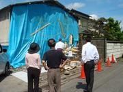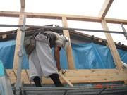 私がお昼ぐらいに確認に行くと、急に雨がポツポツと・・・棟梁に「雨男だな」と冗談交じりに言われてしまいました(笑)
