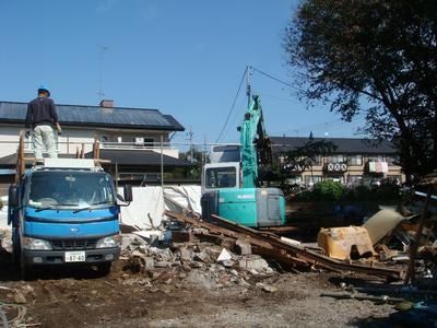 工事中の安全を願いお清めを行い、いよいよ既存建物の解体がスタートしました。ガランとなった家を見てお建てになったお父様は少し寂しそうでしたが、老朽化と寒さが改善されるとあって、新しい建物をご家族皆さん楽しみにしている様子でした。しばらく仮住まいにお引越しです。