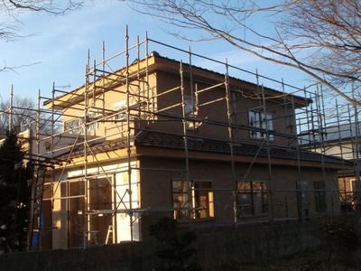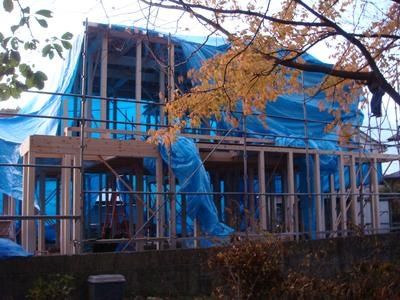 栃木県内、秋の突風が吹く中、無事に建て方が終了致しました。
