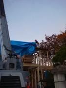 雨が降って、柱や梁などが濡れない様に大きなブルーシートをかけ一安心。