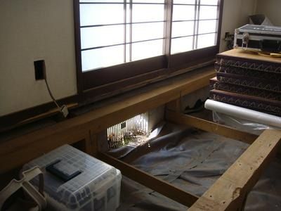 リビングの隣にある和室を洋室に変更するために、床を畳からフローリングに張替え、床暖房も設置。壁と天井にはお子さんのアトピーに配慮し珪藻土を塗ります。