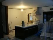 リフォームで快適な生活を手に入れるためとはいえ、家が壊されるショックは多かれ少なかれ、お客様共通の気持ではないかと思います。今まで頑張ってきてくれたオウチに「ありがとう」のメッセージ(壁紙に家族の似顔絵と共に)を残してくれた娘さんたちの思いを乗せ、職人たちの仕事は順調に解体工事から大工工事へとバトンタッチされ、キッチンも据え付けられました。
