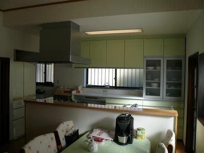 今まで片付けても片付けても、なんとなくスッキリしなかったお台所は、北側の壁に向かっていたキッチンを対面式とし、使い勝手の良い機能的な収納を増やしたことで、ごらんのようにいつも整然とした状態で使えるように生まれ変わった。