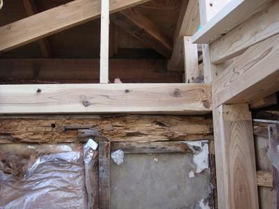 屋根からしみ込んだ雨は、壁だけでなく柱や梁までも腐らせ、建物全体の構造にも悪影響を及ぼしていました。