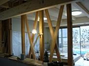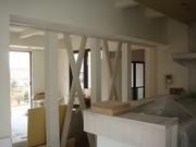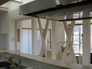 これまでは北側の壁に向かって一人寂しくお料理をしていた奥様から、対面キッチンのご要望がありました。このリクエストを受け、南側リビングに向けてキッチンを取り付けます。そして今回は、建物全体のバランスを考え耐震性向上のために境の壁に筋交いを入れていきます。もちろんキッチンに立った時、目の前に何もない方が開放的ですが、建物は「用・強・美」のバランスが大切。安全第一のデザインを常に心掛けています。
