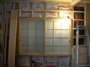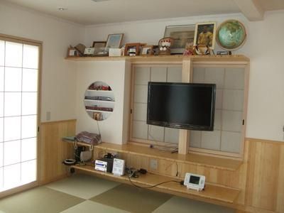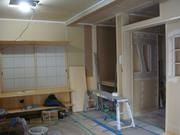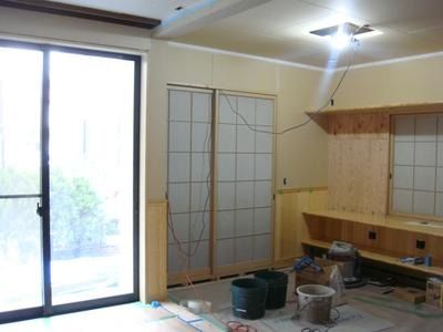 前回紹介した「障子くん」の上下に、棚が取り付けられました。リフォーム前の風通しを確保しつつ、TV&オーディオスペースを設けたいというご主人のこだわりをこのような形で実現させたというわけです。窓の位置は外壁はそのままに、家の内部のみをリフォームし快適にすることを目的にスタートした今回の工事も、最終仕上段階に入りました。完成が待ち遠しいですね。