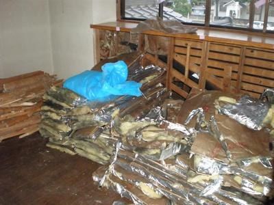 今回のリフォームは2階部分のみの工事となりますので、1階にお住まいのご両親に、極力ご迷惑がかからなよう、解体工事で出た廃棄物なども、建物内と通さずに直接足場から搬出しています。