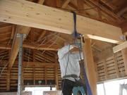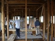 2階のリフォーム現場では、間取りの変更に伴い、柱を抜き梁の補強を行っています。
