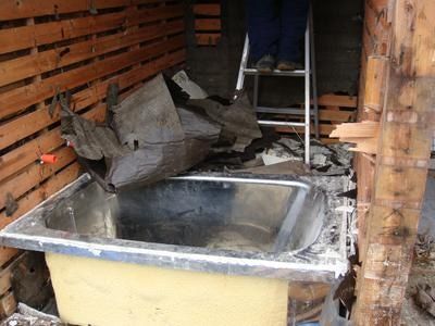 我々は壁が剥がされ腐った下地が露出した状態で、お客様にその状況の説明を致します。「年数的に通常の住宅と同レベルの腐り状態ですよ。ご安心ください」「次にこの土台を取り替えますよ」などなど。