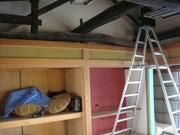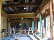 天井を解体すると、黒光りした太い梁が姿を現した。建築のことを知っている人ほど、このような古い材料の価値もよく理解している。見た目もダイナミックでうまく表現すればデザイン性を高める好材料にもなり、なにより乾燥していて狂いが少ない。