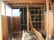 工事は、解体も終了し大工が断熱性の高いサッシを入れ、壁の補強を行っております。