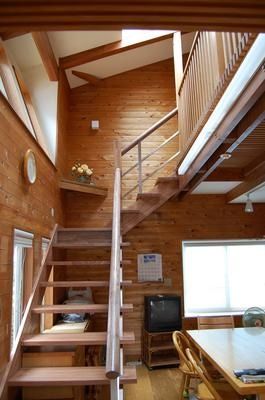 新築当初から無垢材を仕上材に使用していたこともあり、リビングから直接2階に上がることが可能になったことで、より一層ログハウスのような寛げる家になりました。