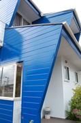 外壁は、ごらんのようなマリンカラー。近所の方からも注目されているようです。←コチラは冬でも夏気分ということで・・・(笑)