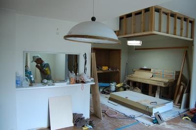 今回のリフォームで大きく変る部分が、和室コーナーとリビングの間の壁です。低くて少ししか開く事が出来なかった所を壊し、広めに開くようにしています。