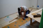 床のフローリングも貼り進められ近隣の住人の方に気を配りながら、工事は順調に進んでおります。