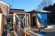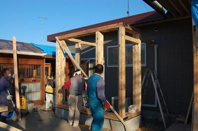 現場では今回のリフォーム工事の柱となる正面外観の基礎や骨組みが出来上がってきました。
