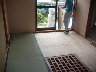 部分的ですが、和室6帖の木工事(耐震の下地補強し)内部の仕上げ工事も完了、本日畳の搬入をしました。
