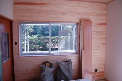 ダイニングの東面には杉の無垢材を貼りその他は壁天井共、ビニールクロス貼りにしました。