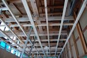 内部解体工事も完了し、木工事が始まりました。構造の補強をし天井野縁下地組中です。