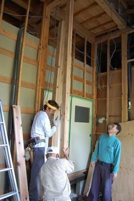 その際、重要になってくる工事が『壁の位置変更に伴う柱の入れ替え』です。今回のお宅では柱の長さが通常よりも長いことなどもあり写真のように3人がかりで入れ替えを行っております。