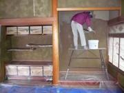 和室の京壁塗り替えが始まりました。畳はこの際表替え・障子の張替も行います。古い京壁を剥がす前に 畳・障子は引上げました。既存部分は入念に養生しました。今度は明るめも壁材をご希望です!仕上がりが楽しみです。 齋藤