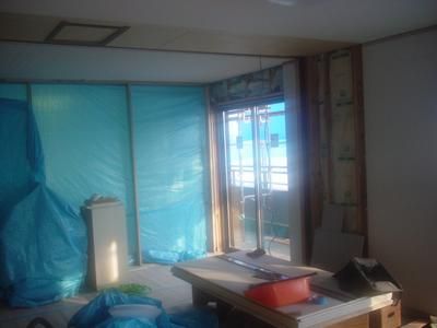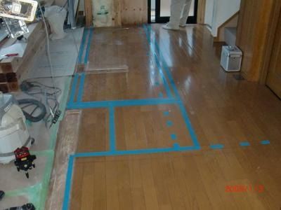 床のテープは新しく作る壁の位置を解りやすくしたものです。