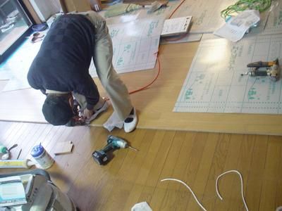 今回は既存の床を利用して、フローリングの上にもう一枚フローリングを重ね張りです☆