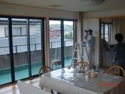 写真は塗装前に、エアコンやサッシに塗装が付かないように、