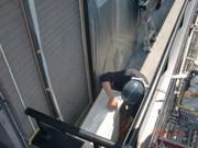 写真は塗装前に、エアコンやサッシに塗装が付かないように、