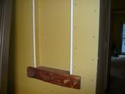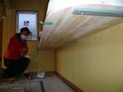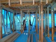 既存構造部の補強や仕上りに大切な下地の調整を入念に行いました。石膏ボードを張ると、いよいよ部屋らしくなってきますよ~!外壁は透湿・防水シートを張りました。
