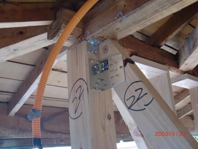柱・桁、筋交を金物で補強し、