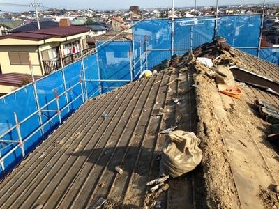 屋根の瓦を降し、屋根と2階部分を解体しました。