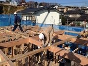 1日で2階部分の屋根まで施工します。日が短いので時間との戦いです!!!