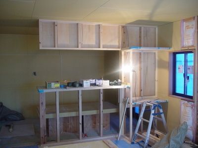 クロスが張り終わった部屋ではキッチンの流し台の施工が行われました。