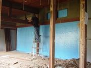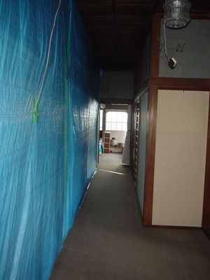 工事が始まり、内外部の解体作業が進んでおります。築100年近い建物ですが木造の骨組みはしっかりしています。解体するのが大変なくらいよくできている建物です。壁は土壁となっておりかなりの埃が出ます。シートで居住部分と区画し埃が浸入しないようにしています。解体屋さんは埃だらけの真っ黒ですが・・・。
