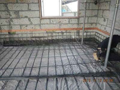 リフォームでベタ基礎できるの?と思いますができるんです!小屋組みを支え、内部を何も無い状態にし鉄筋コンクリートのベタ基礎を作ります。写真は鉄筋の状況と基礎完成後です。