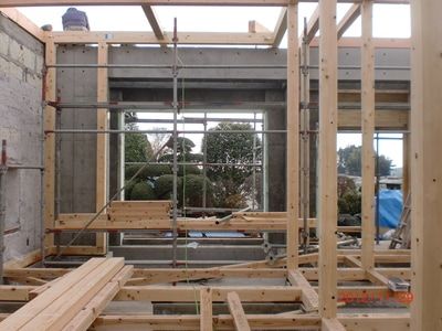基礎も出来上がり大工工事へと進んでいきます。屋根も下地から新しくし、瓦も葺き替えました。柱はお父さんこだわりの桧の4寸柱です。