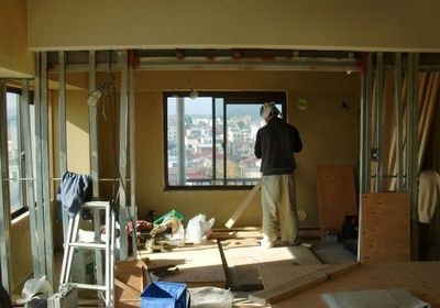 軽量鉄骨にて壁、天井の下地組が完成し、