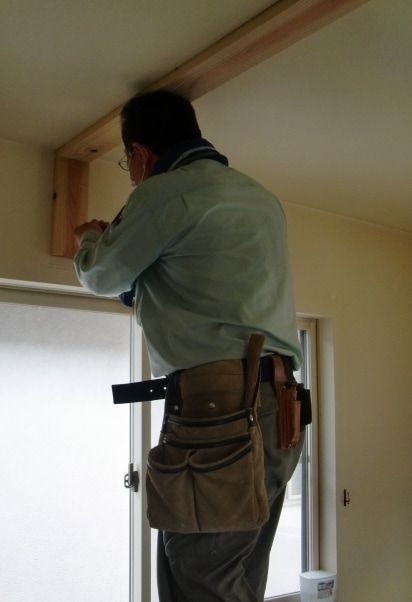 間仕切り壁を造作中。大工さん、手際よく進行中です。