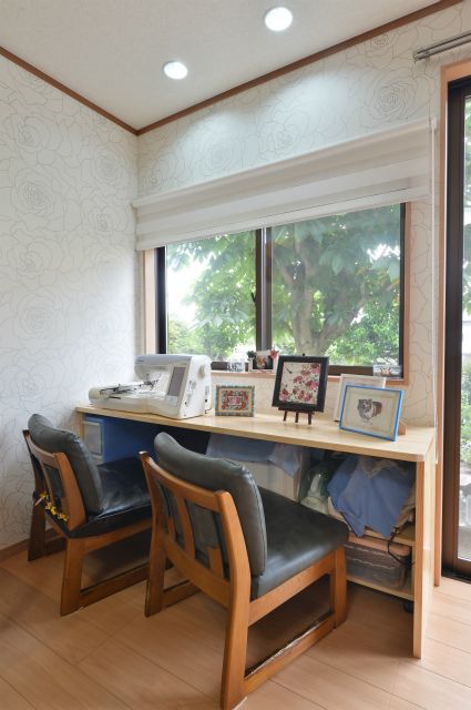 お庭を見ながらお裁縫できるスペース。とても素敵です。