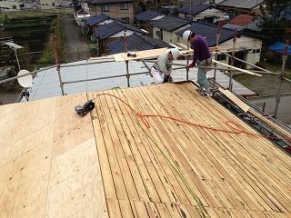瓦を剥がし、野地板を貼り、防水シートを貼り、