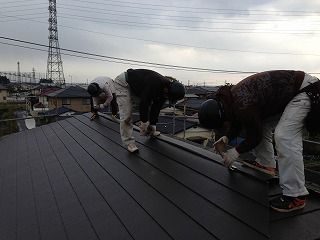 この後、突然の雨にも負けず雨の心配のない部分まで完了致しました。