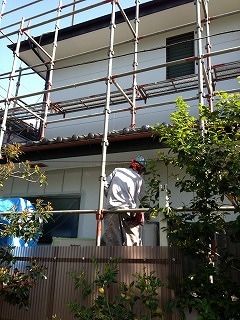 ガルバニウム鋼板への葺き替えの為 足場工事を行いました。