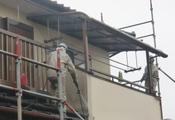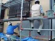 まずは、既存外壁(2階部分)等、高圧洗浄し、サッシ等しっかり養生。