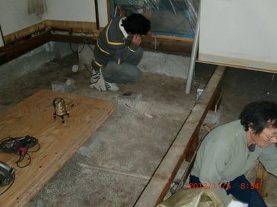 長い間頑張ってくれたキッチンの床は、一度すべて解体し