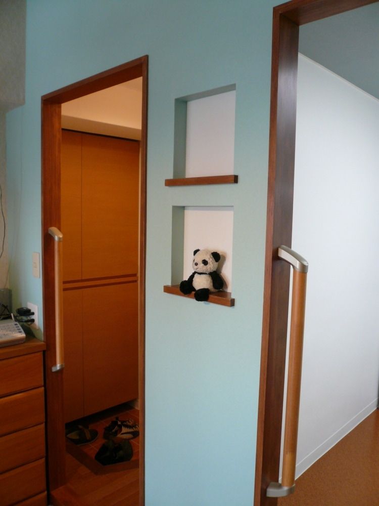 既存配管の接続等を再確認し、内装材の不具合等をチェックしました。 お客様の大好きなターコイズブルーの壁紙を使用しまし、お客様も大喜び。