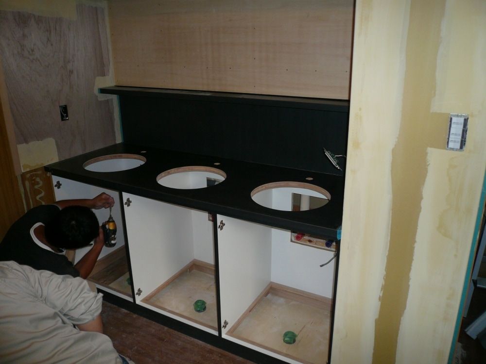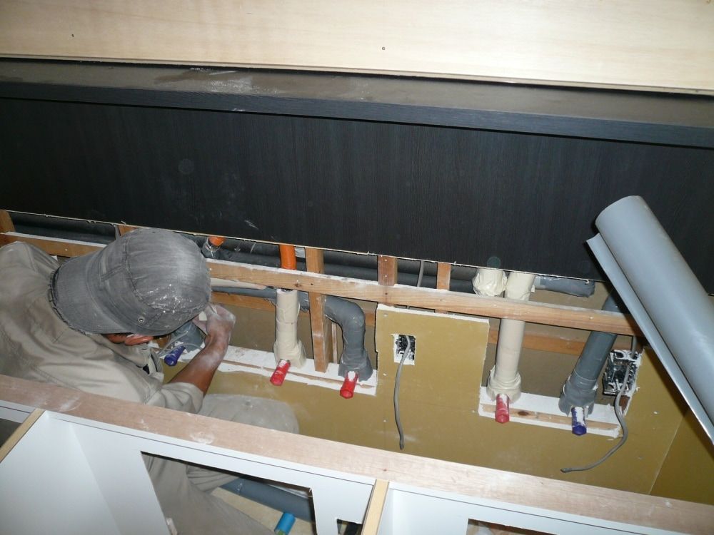 2階の客室の共有洗面台は配管の断熱保温に注意!(寒冷地仕様)内部配管材にも保温しました。