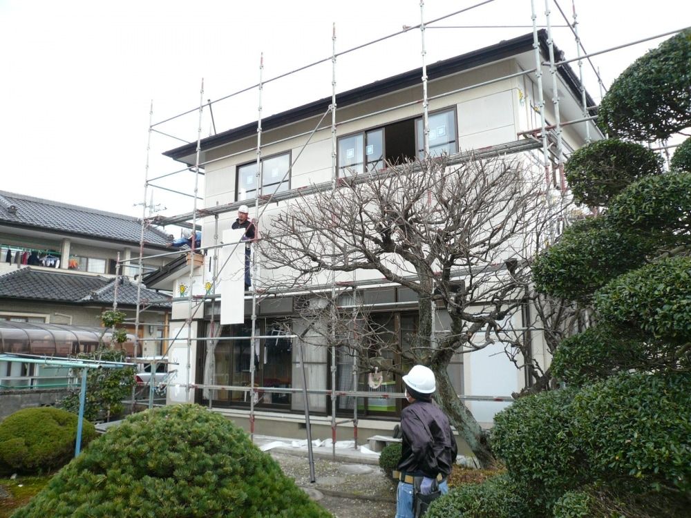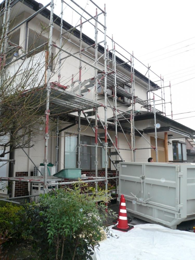 外部の足場を設置 工事用と2階の工事がメインなので搬出入用も兼ねています。