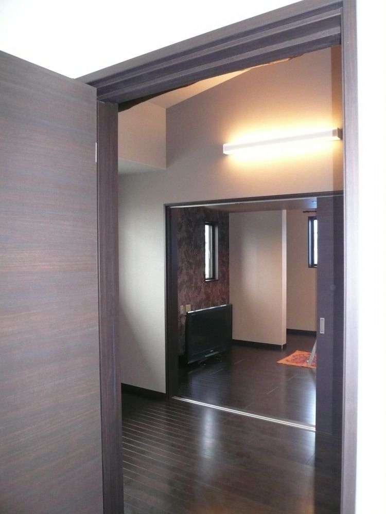ご夫婦の寝室はシックな内装で落ち着いた雰囲気に、子供部屋は可愛らしいクロスで明るく仕上がりました。また、子供部屋にはロフトを造作。既存の梁もアクセントに見えています。