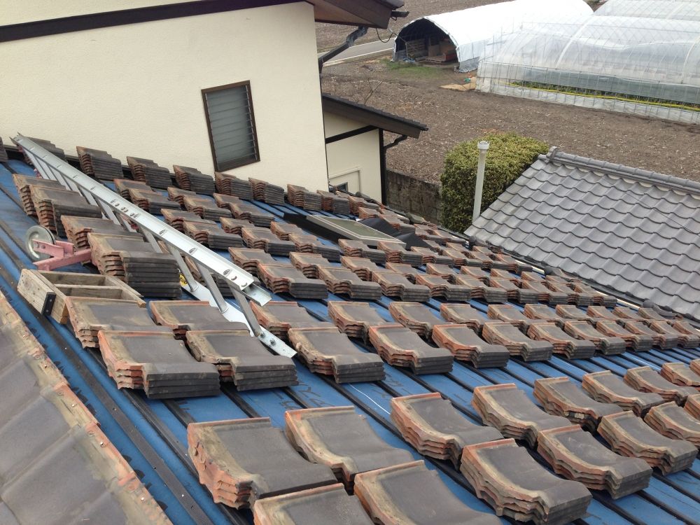 瓦屋根は大雪の日、天井を外した状態だったため、既存の瓦から雨漏りがしていることが判明した為、腐食した野地板を張り替え、瓦を積み替え致しました。